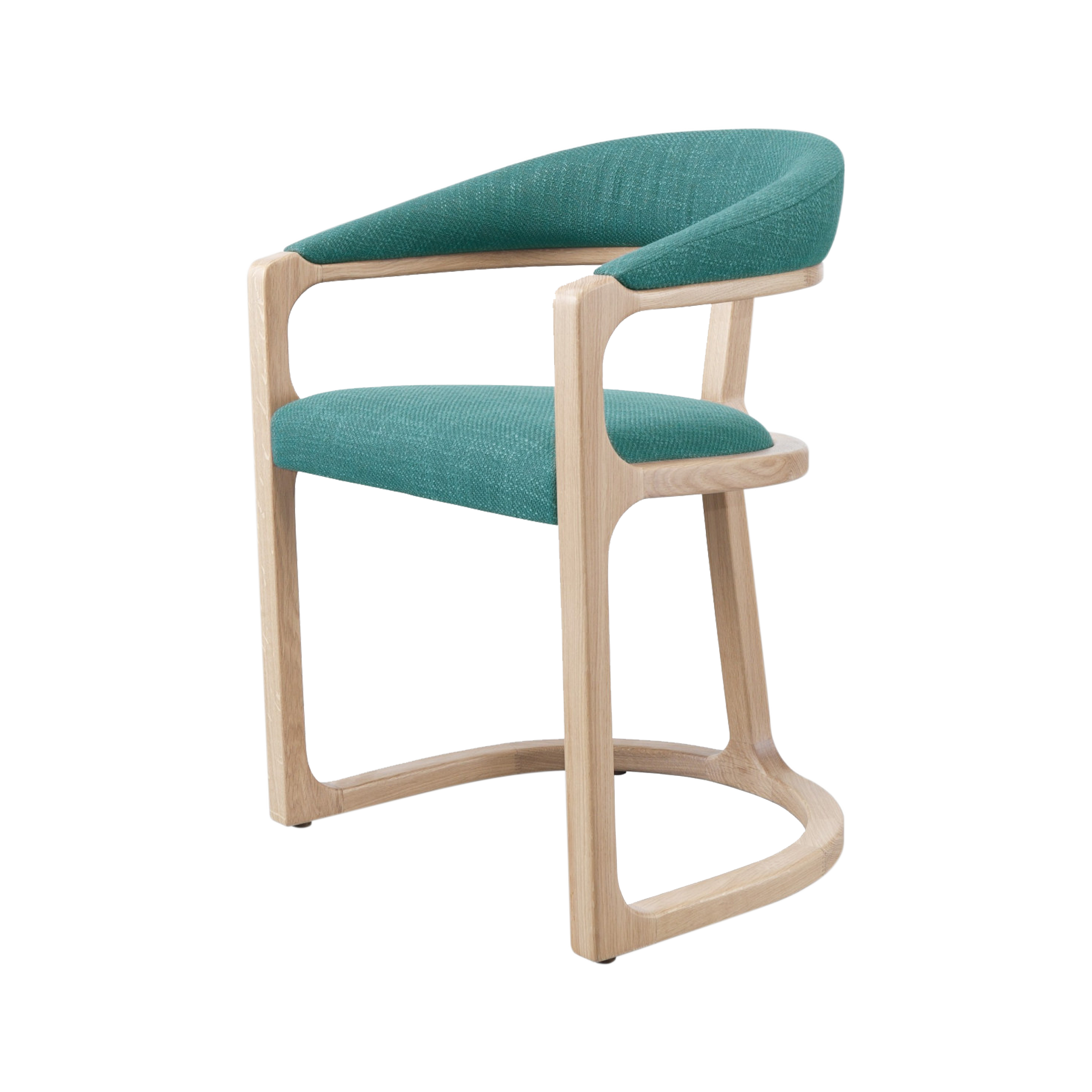 alky dining chair made of solid teak wood with backrest and seat covered in foam and upholstery for indoor
