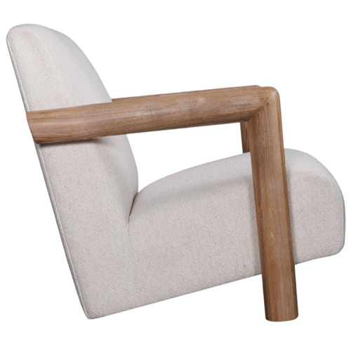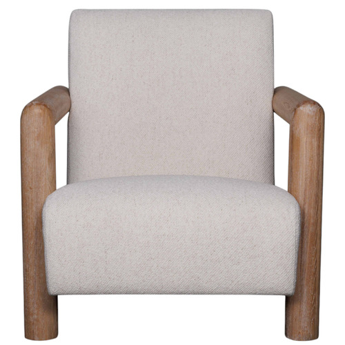 Arm chair made from recycled teak wood and equipped with soft cushions for indoor use