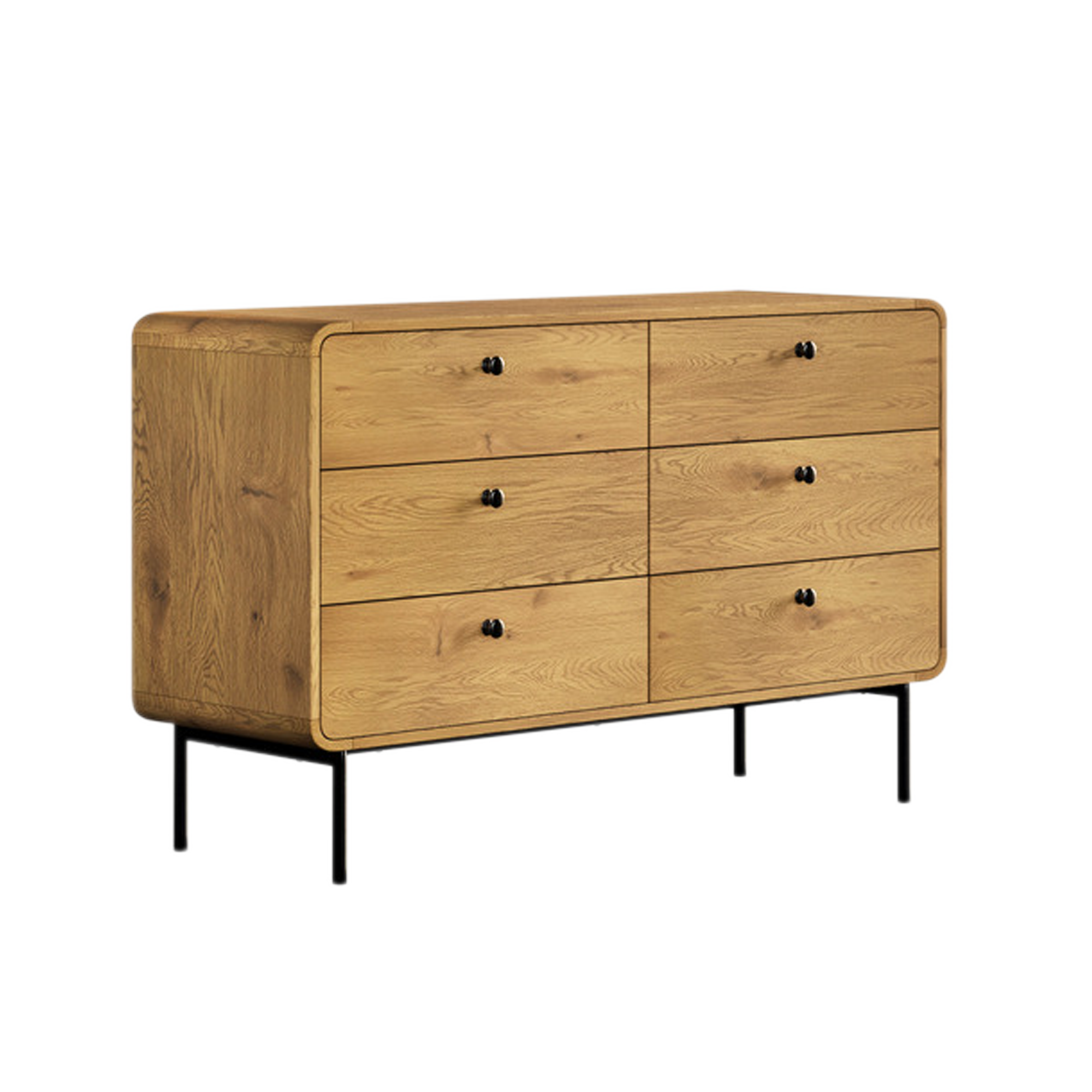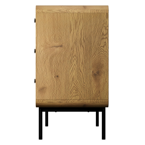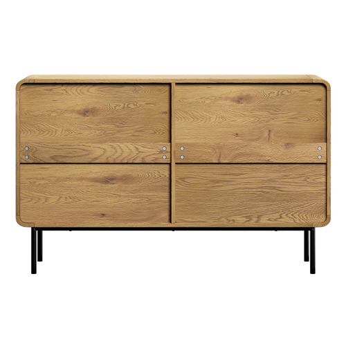 Ashbourne dresser is accompanied by teak wood finishing and black legs and knobs for indoor