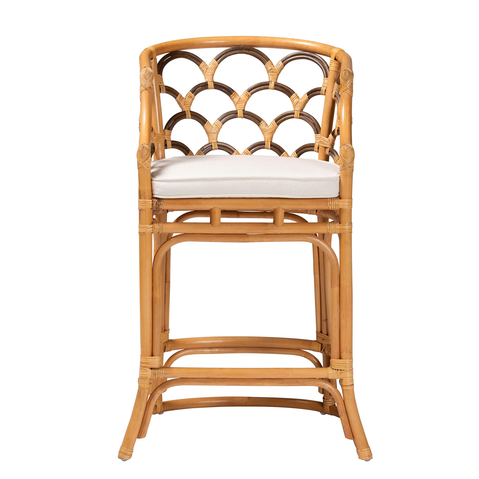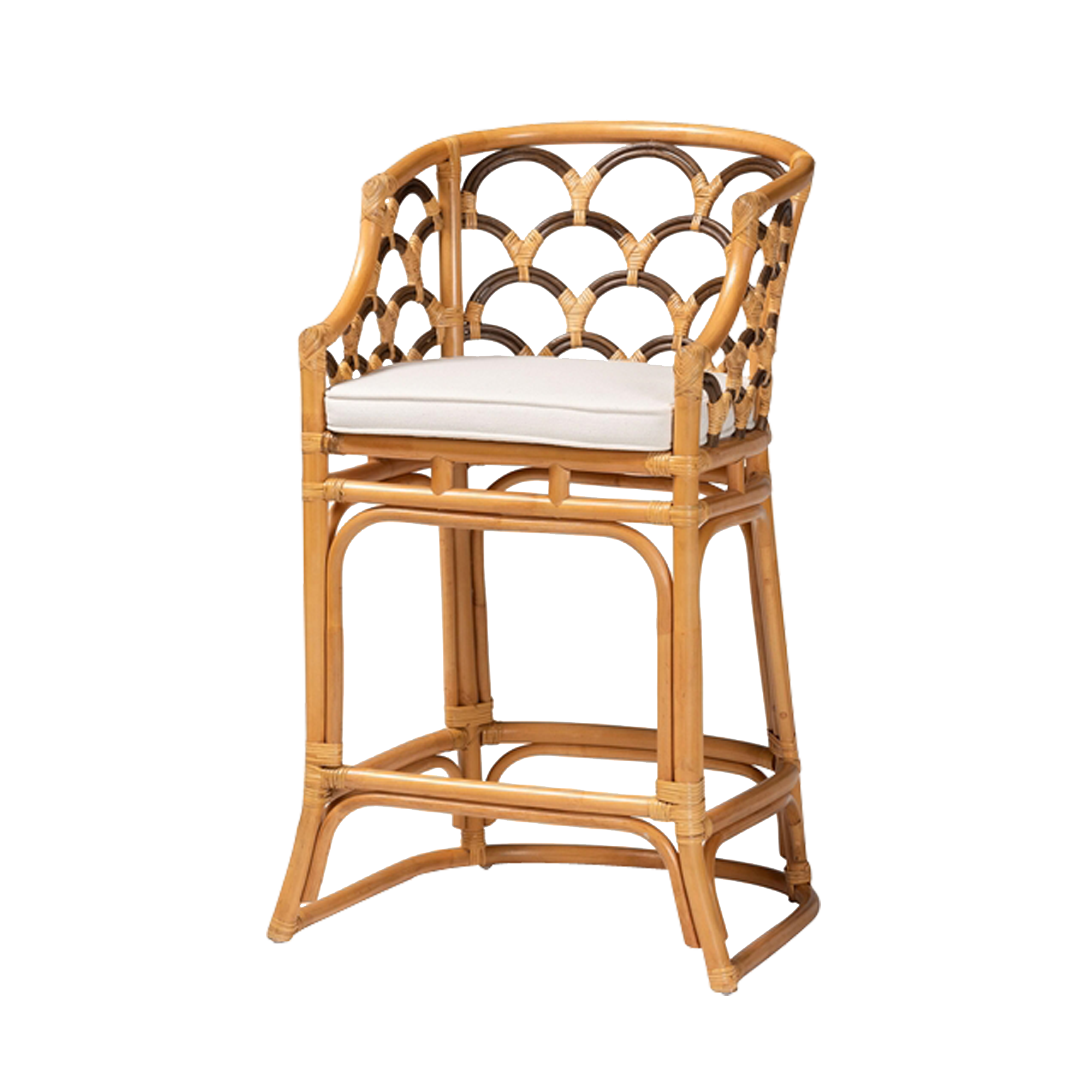 bar chair made of solid rattan frame with rattan woven and pillow seat for indoor