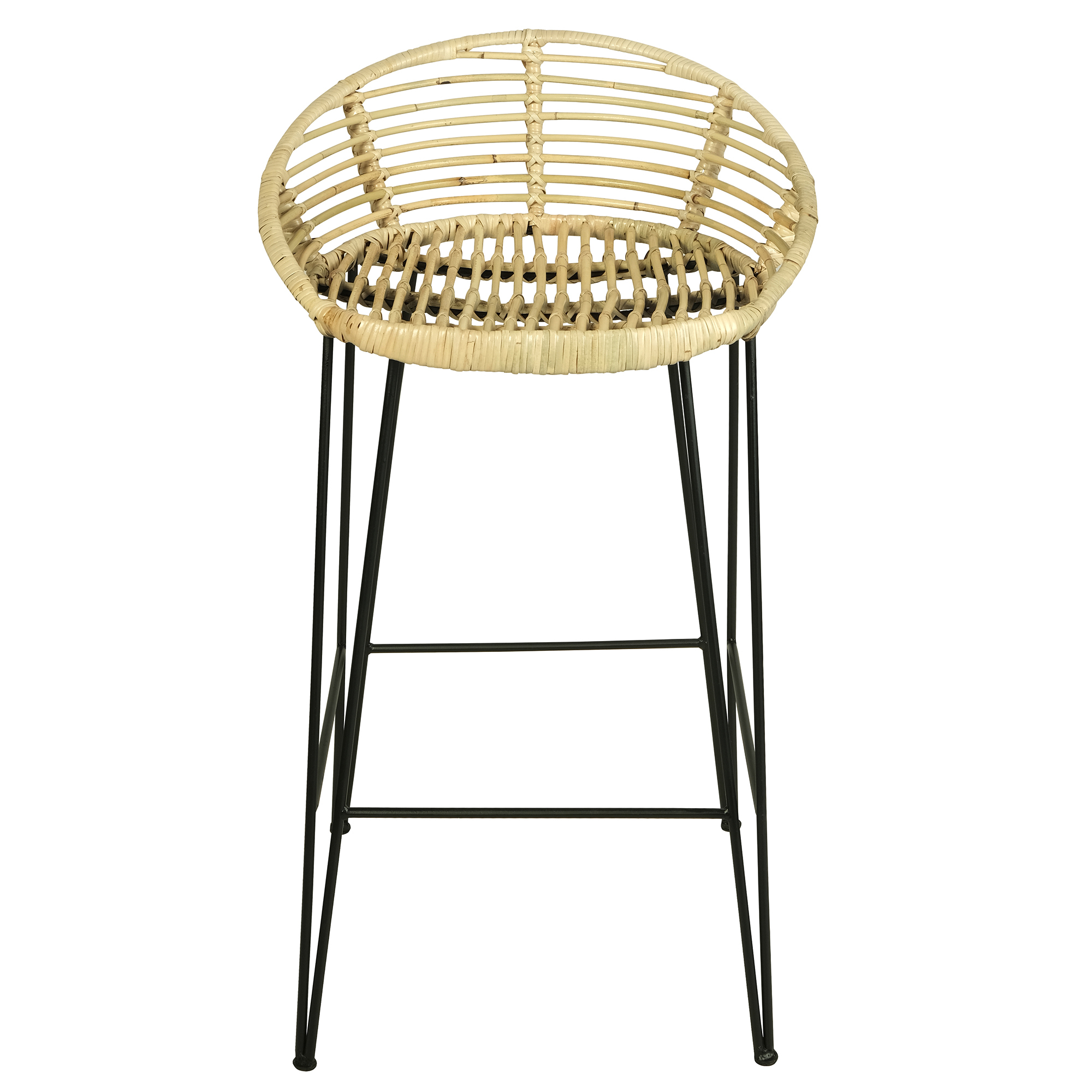 Bar chairs made of black iron legs and rattan seats and backrests for indoor use
