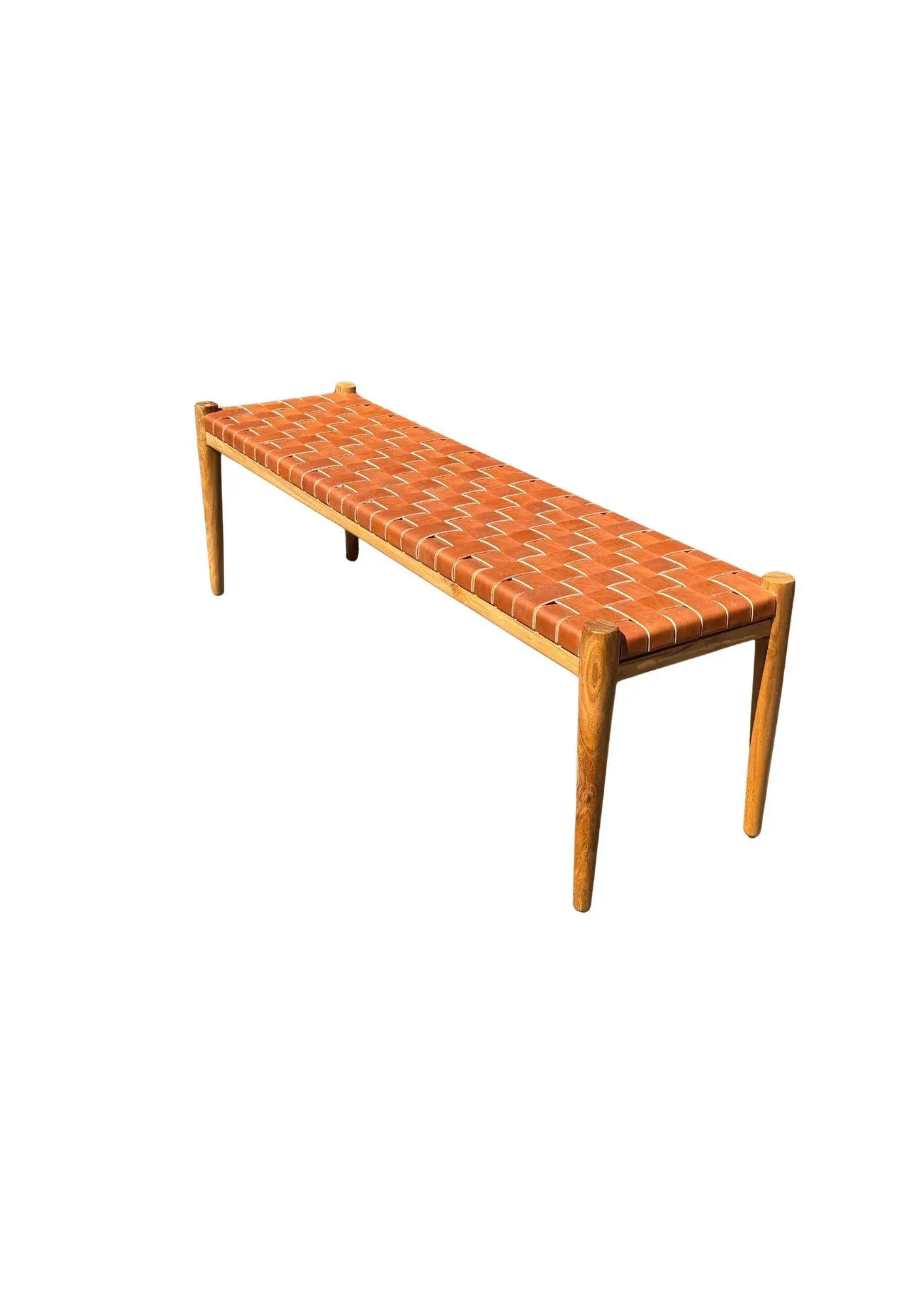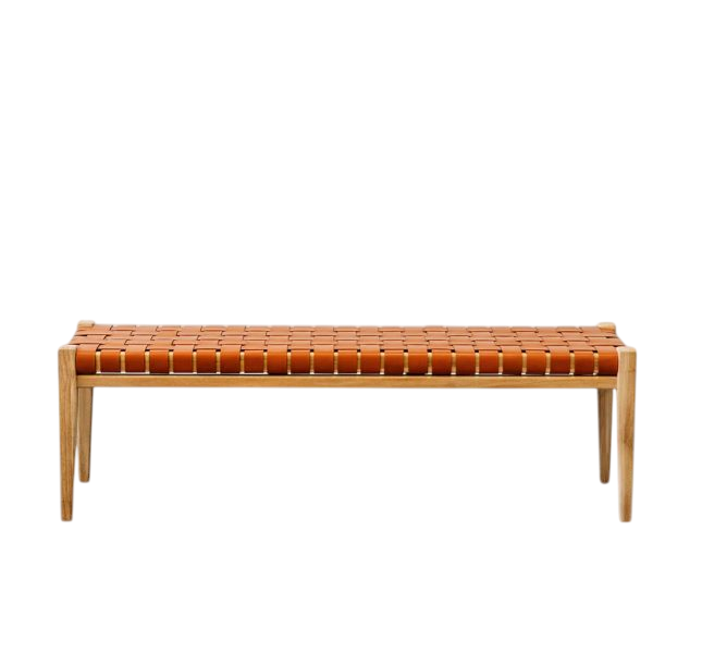 Bench made of good quality teak wood frame and equipped with PU leather woven seat for indoor and outdoor