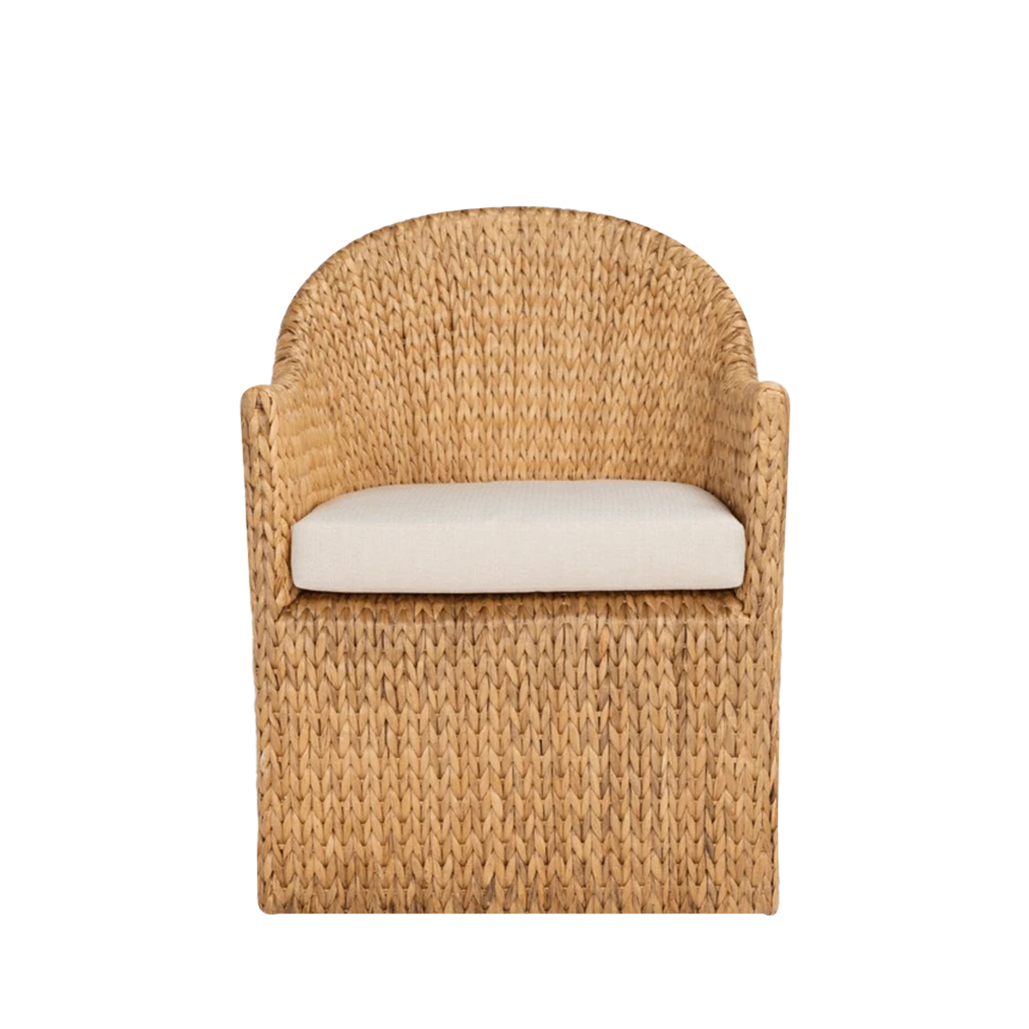 Braided Natural Water Hyacinth Dining Chair With Beige Cushion
