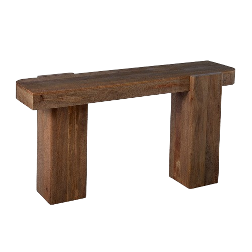 Console table made of solid teak wood with dark brown finishing for indoor living room area