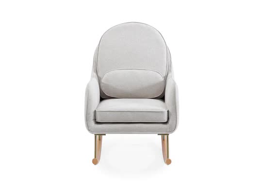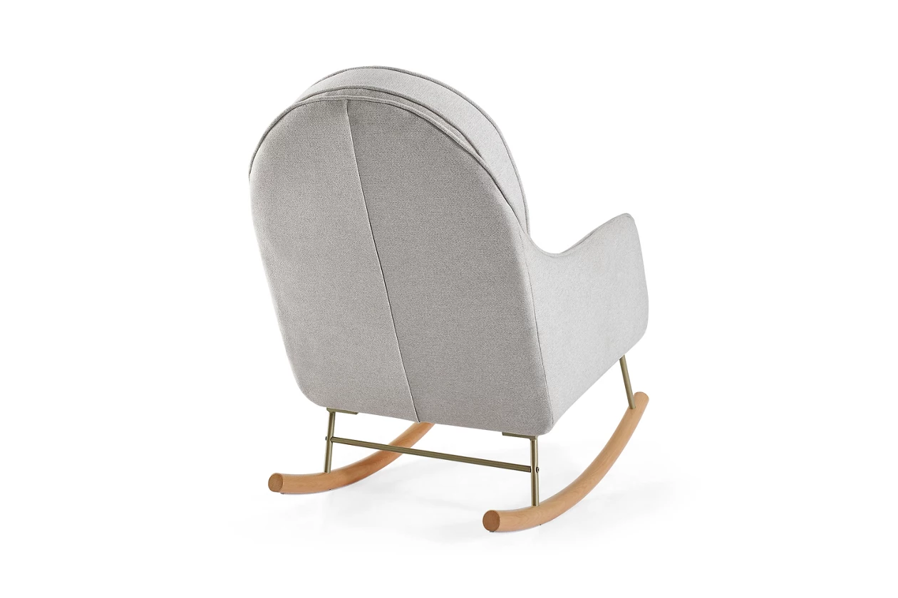 dafry rocking chair made of solid teak wood frame with a seat and backrest wrapped in upholstery for indoor
