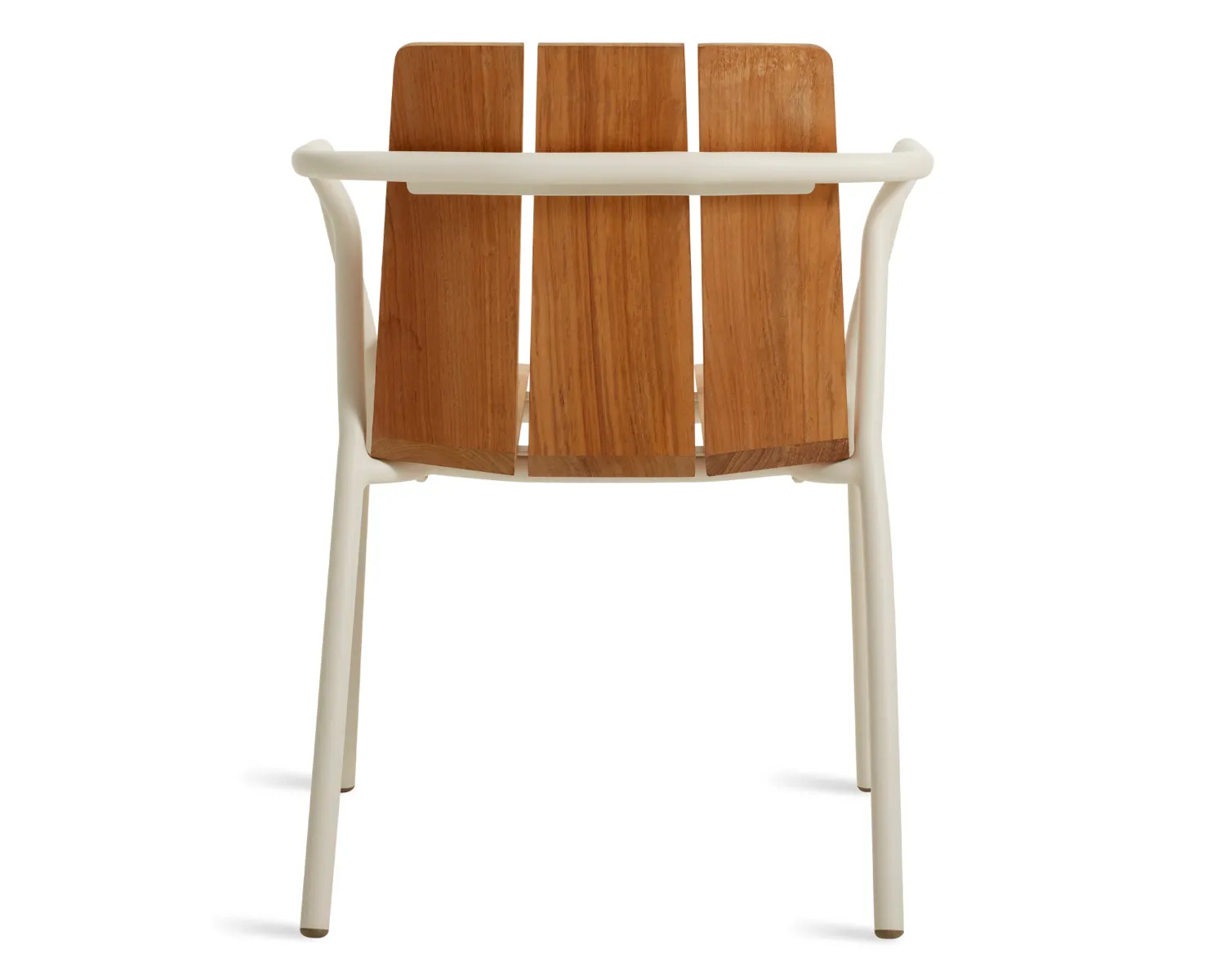 dining chair made of iron frame with solid teak wood backrest and seat for indoor and outdoor