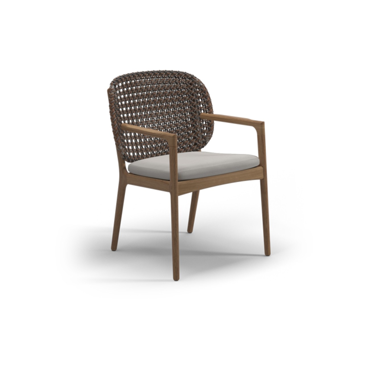 dining chair made of solid teak wood frame with rattan wicker and cushion for indoor and outdoor
