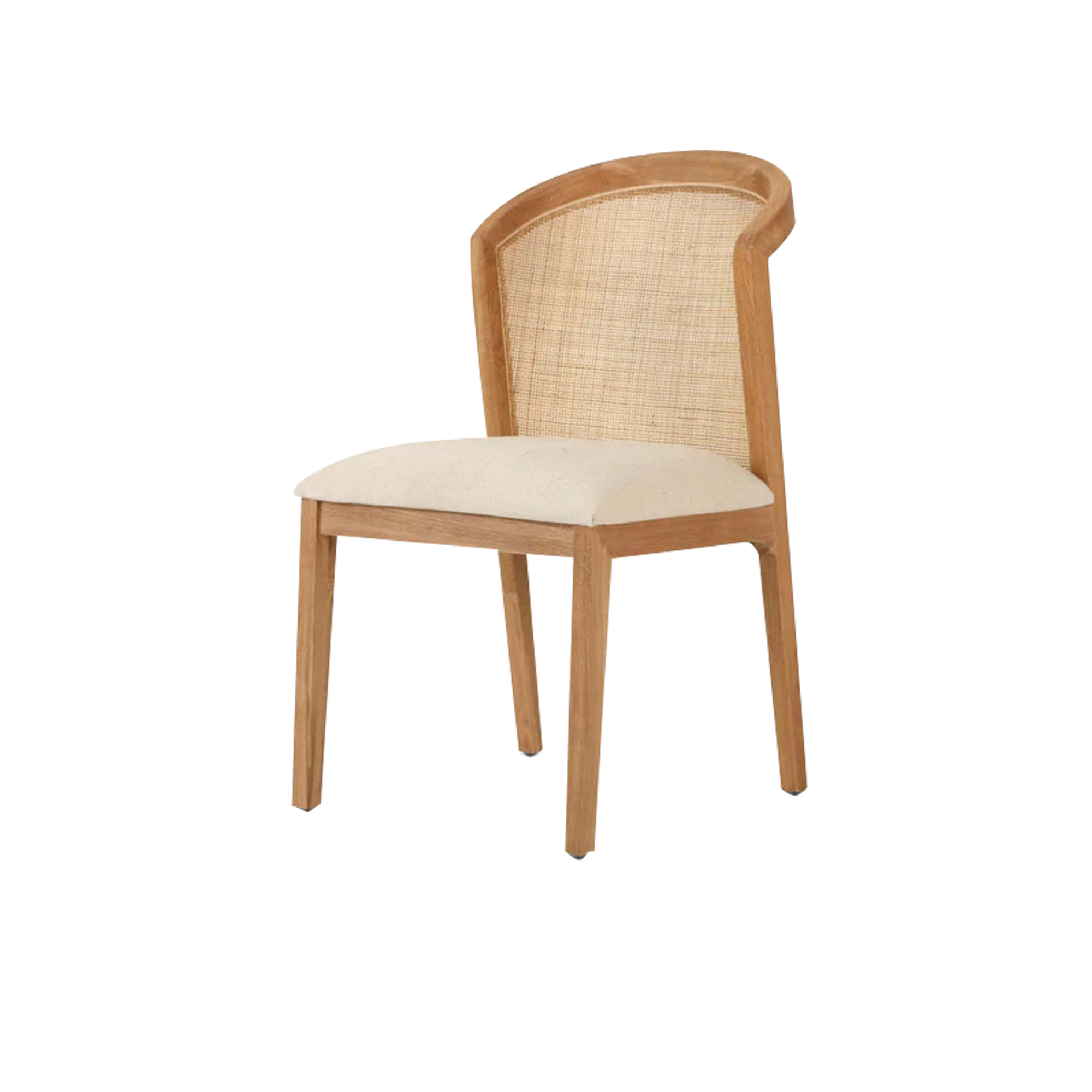 dining chair made of solid teak wood with foam and fabric and rattan wicker for indoor