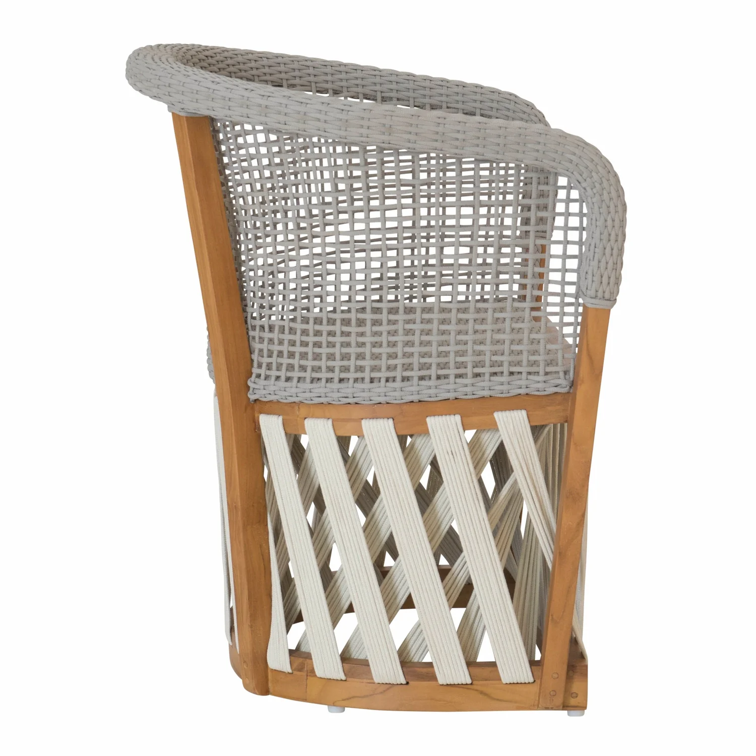 Dining chairs made of teak wood frame and decorated with woven rope for dining room