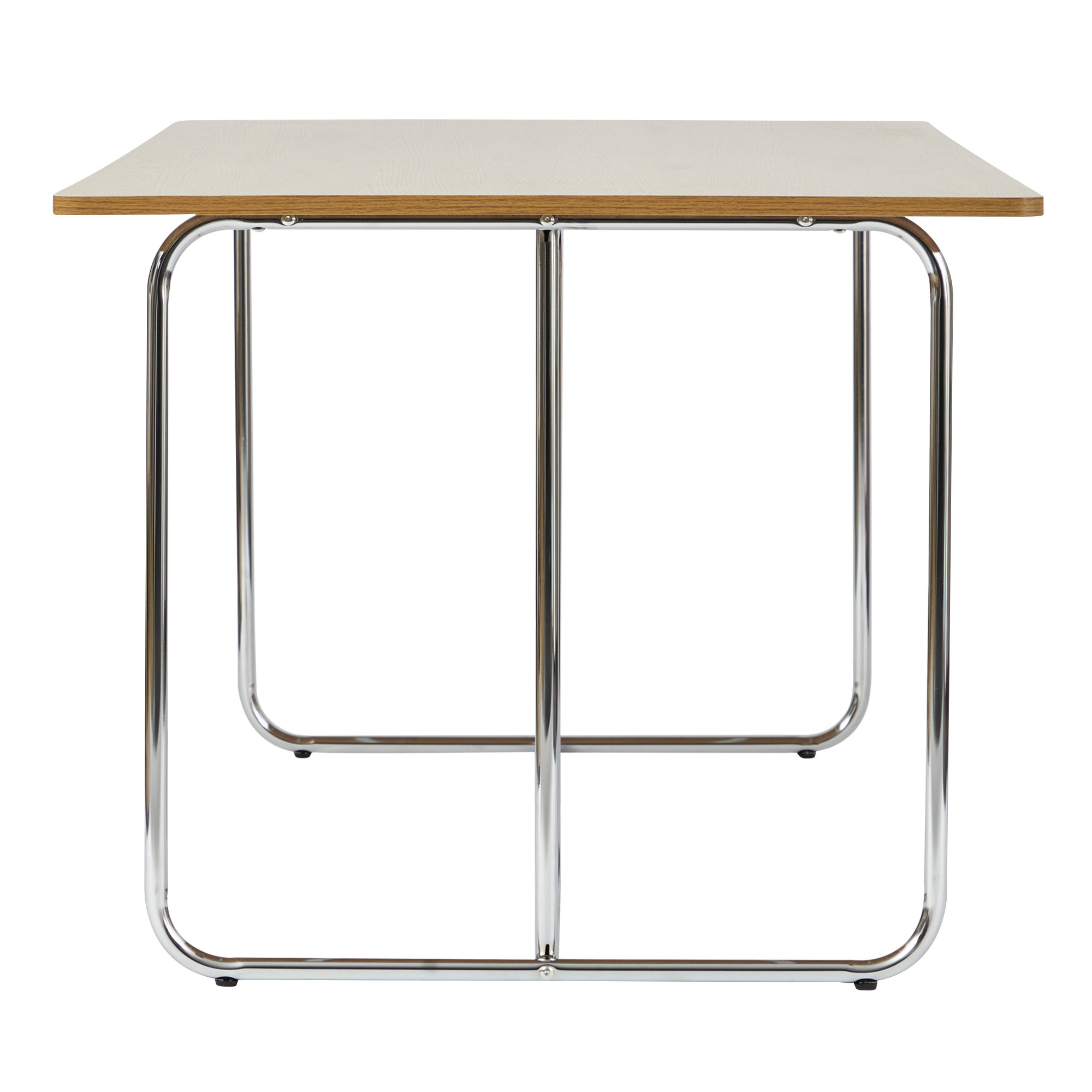 Dining table with chrome stainless steel table legs and natural teak wood table top