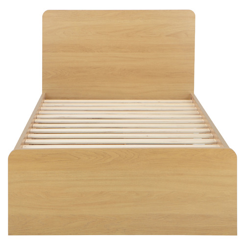 MALM high bed frame made of teak wood with 2 storage drawers