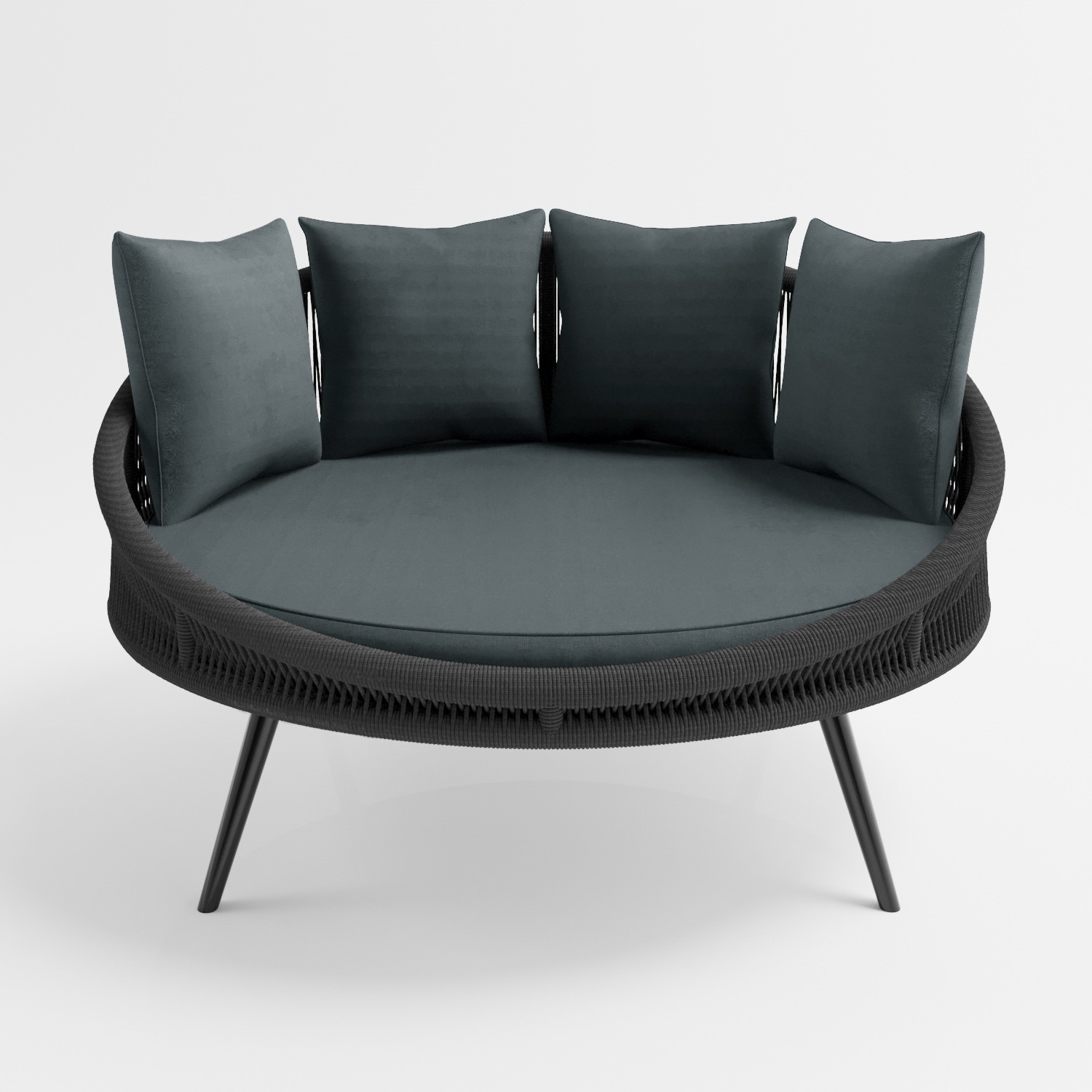 Round daybed with aluminum frame with woven rope and thick mattress