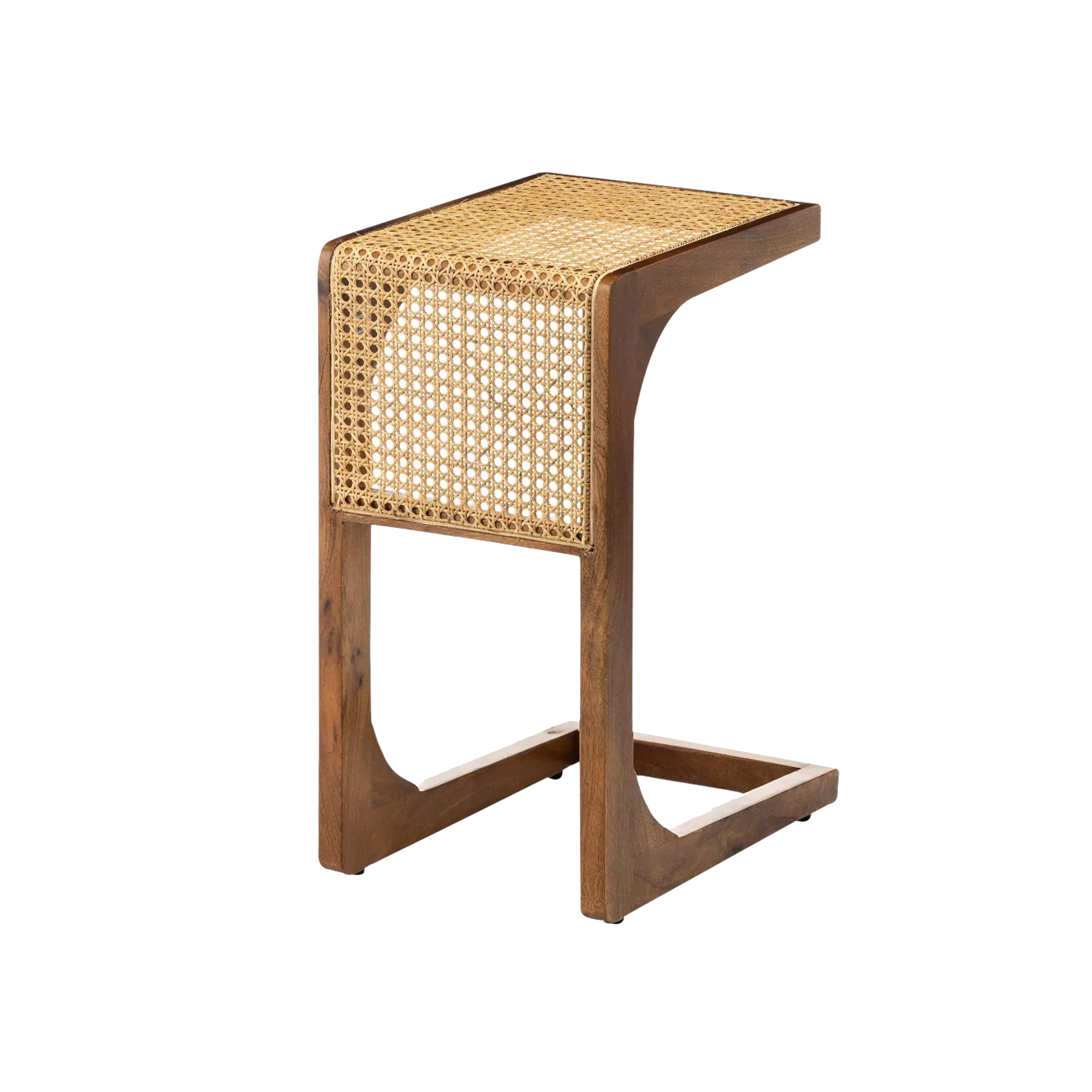 side table made of solid teak wood frame with rattan woven for indoor and outdoor