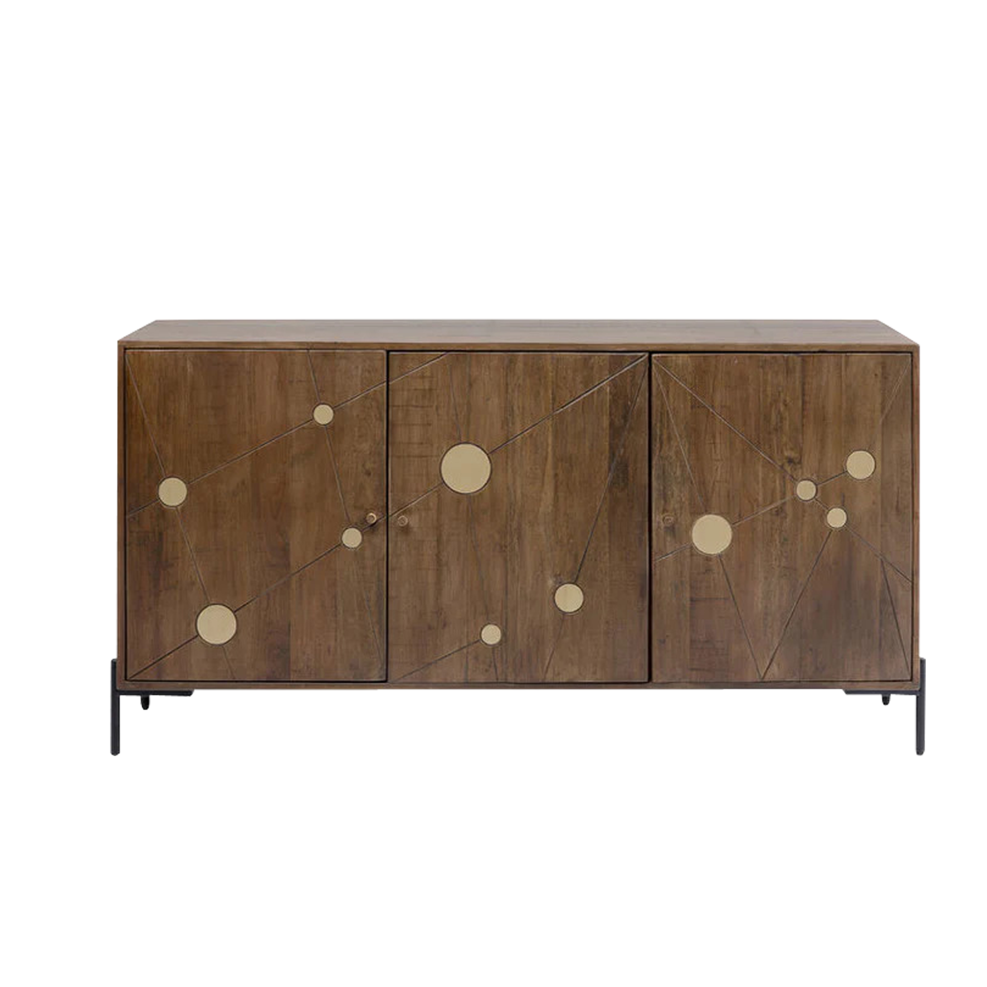 sideboard made of solid teak wood frame with 2 doors for indoor living room area