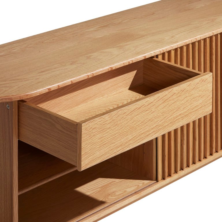 sideboard made of solid teak wood frame with natural color finish for indoor living room area