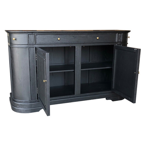 Simon sideboard in teak wood finished in black with 3 drawers and 2 doors