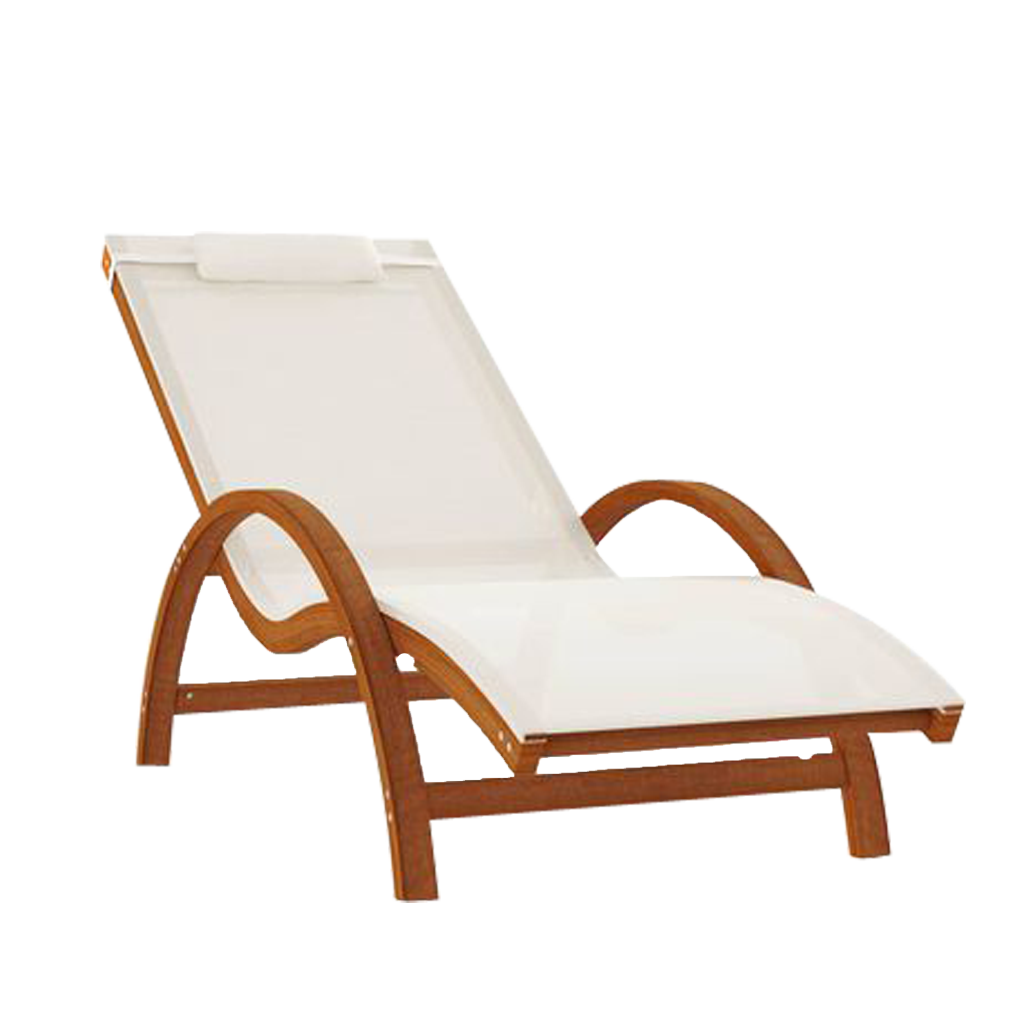 sun loungers made from solid teak wood with white cushions for outdoor use