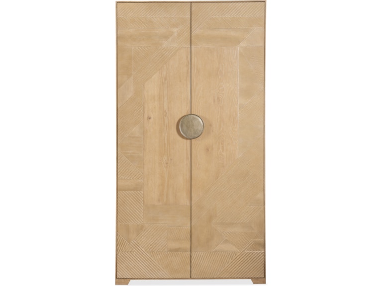 Two-door cupboard made of natural teak wood with elegant geometric motifs
